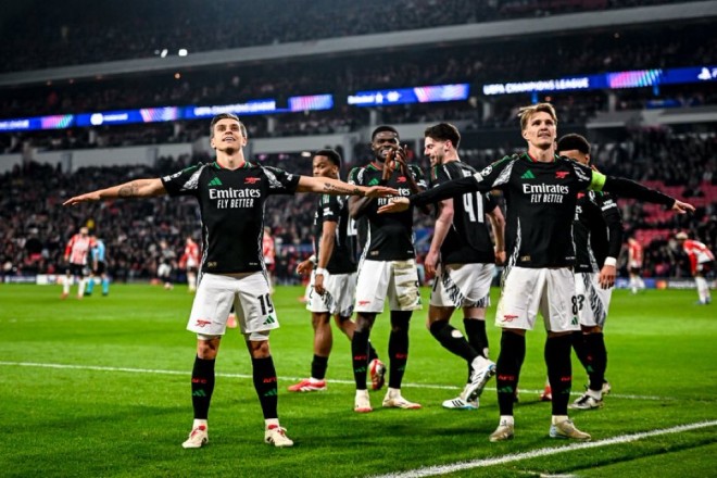 وضع آرسنال قدماً في ربع نهائي دوري أبطال أوروبا بعد فوزه 7-1 على حساب أيندهوفن، في ذهاب دور الـ16، على ملعب فيليبس.
