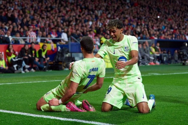 وشهد الشوط الأول من المباراة أفضلية من جانب برشلونة الذي هدد مرمى أتلتيكو مدريد في أكثر من مرة على طريق نجمه الأول لامين يامال.