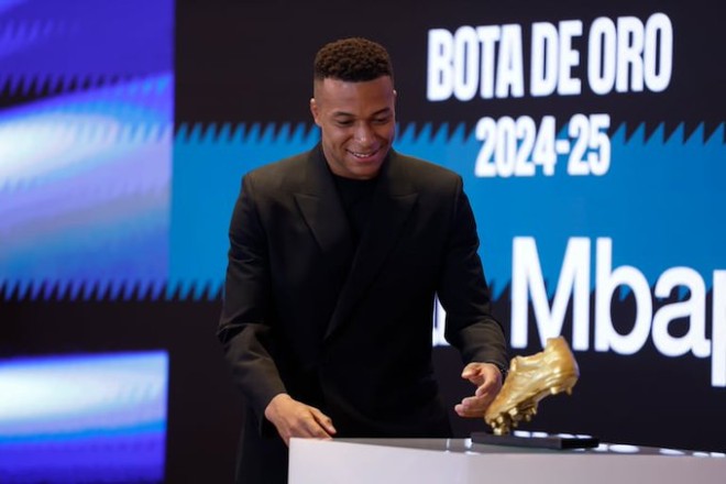 تسلّم نجم فريق ريال مدريد الدولي الفرنسي كيليان مبابي، اليوم الجمعة، جائزة الحذاء الذهبي الأوروبي عن الموسم الماضي، في المنصة الشرفية لملعب سانتياجو برنابيو.