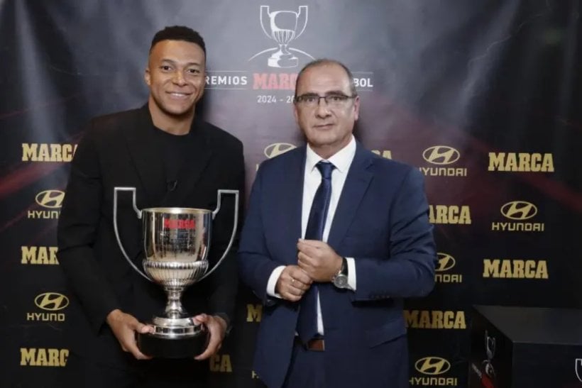 تسلّم كيليان مبابي، نجم ريال مدريد، جائزة «البيتشيتشي» من مدير صحيفة "ماركا"، خوان إيغناسيو غاياردو، بعدما أنهى الموسم الماضي كأفضل هدّاف في الدوري الإسباني برصيد 31 هدفًا، في أول مواسمه مع الفريق الملكي.