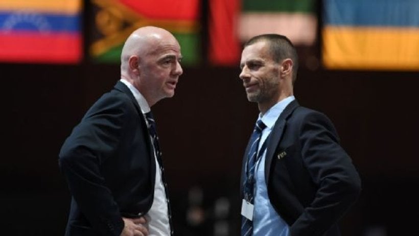 تقدمت مجموعة من لاعبي كرة القدم والأندية ومنظمات دولية بشكوى إلى المحكمة الجنائية الدولية ضد جياني انفانتينو رئيس الاتحاد الدولي لكرة القدم (فيفا) وألكسندر تشيفرين رئيس الاتحاد الأوروبي لكرة القدم (يويفا).