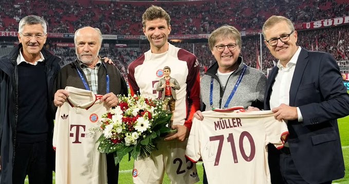 وتم منح مولر قميص يحمل الرقم 710 مع تمثال له، على هامش مباراة الفريق ضد دينامو زغرب، على ملعب آليانز آرينا.
