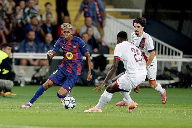 The German coach Hans Flick, the head coach of FC Barcelona, included the young talent Lamine Yamal in the starting lineup during the match against Paris Saint-Germain, currently being played at the Montjuïc Stadium as part of the second round of the group stage of the UEFA Champions League.