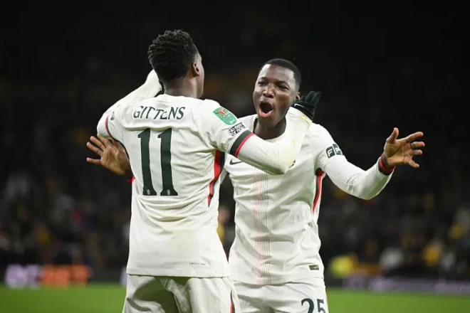 Wolverhampton reduced the deficit through Tolu Arokodare in the 48th minute, and then David Wolf scored a second goal for Wolverhampton in the 73rd minute.