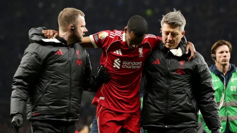 Isaac quickly made his mark by scoring Liverpool's first goal in the 57th minute. However, his joy was short-lived, as he was subjected to a strong challenge from Tottenham defender Mickey van de Ven during the goal, causing him to immediately fall to the ground, affected by the injury.