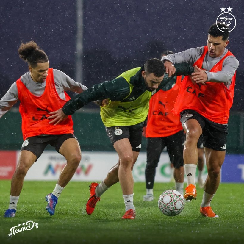 La séance d'entraînement qui s'est tenue ce soir a été marquée par un grand sérieux et une discipline exemplaire de la part des joueurs, sous la direction du capitaine de l'équipe nationale, Riyad Mahrez, dans une atmosphère reflétant un engagement élevé au sein du camp, ainsi qu'un désir manifeste de se préparer au mieux pour la prochaine échéance.