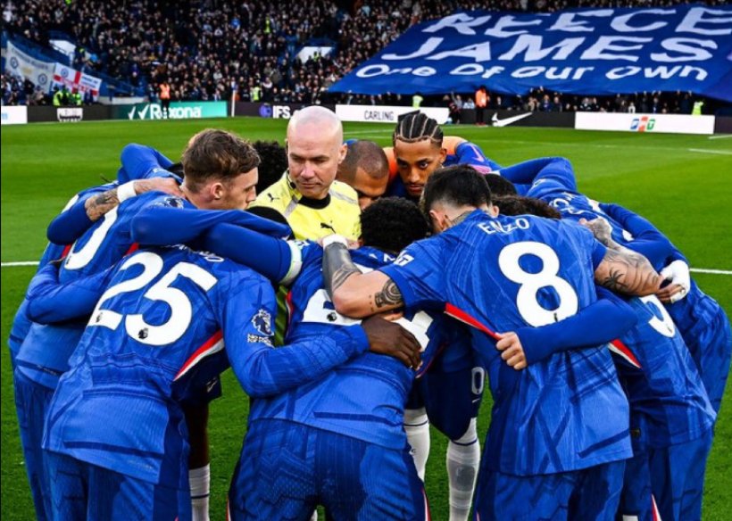 Juste avant le coup d'envoi, les joueurs de Chelsea se sont rassemblés au centre du terrain pour une brève discussion, une scène habituelle que les équipes font parfois avant le début des matchs. Mais ce qui était remarquable cette fois-ci, c'était la présence de l'arbitre au milieu du cercle des joueurs, se tenant parmi eux de manière inhabituelle.